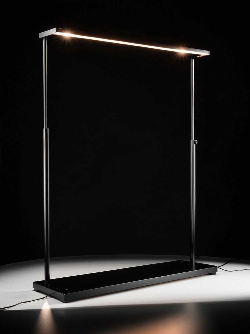 sleek black stand with soft lighting and gentle highlights on a black background, ideal for elegant product photography