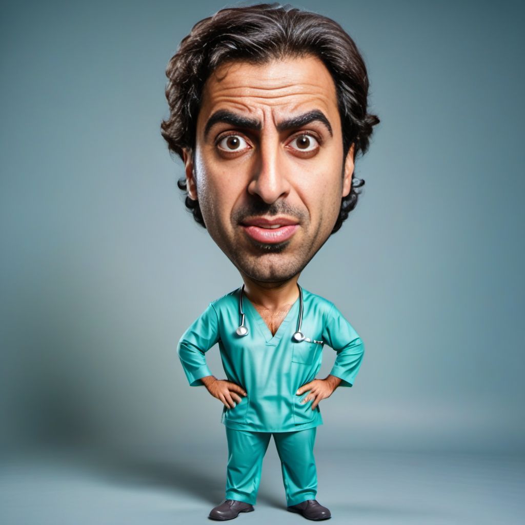 Funny Caricature of a Young Middle-Eastern Surgeon