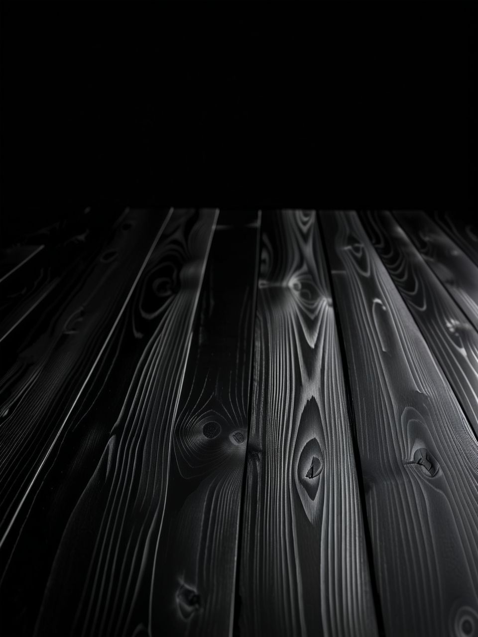 matte black wooden surface with soft shadows on a black background, perfect for rustic product displays product photography background