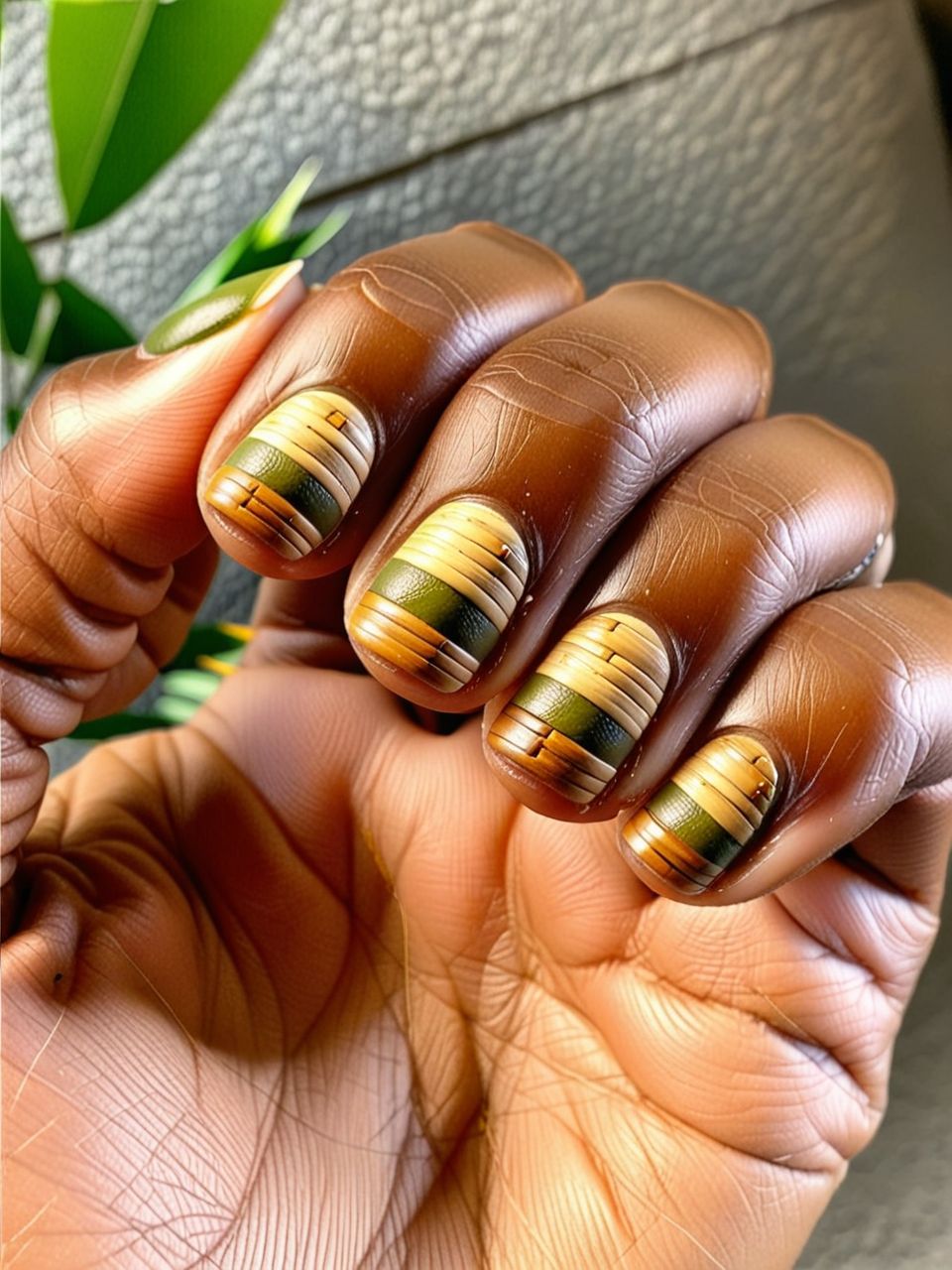 Discover a serene nail art design featuring pebbles and bamboo, perfect for creating a calming atmosphere. Ideal for those seeking a peaceful vibe in their daily routine.