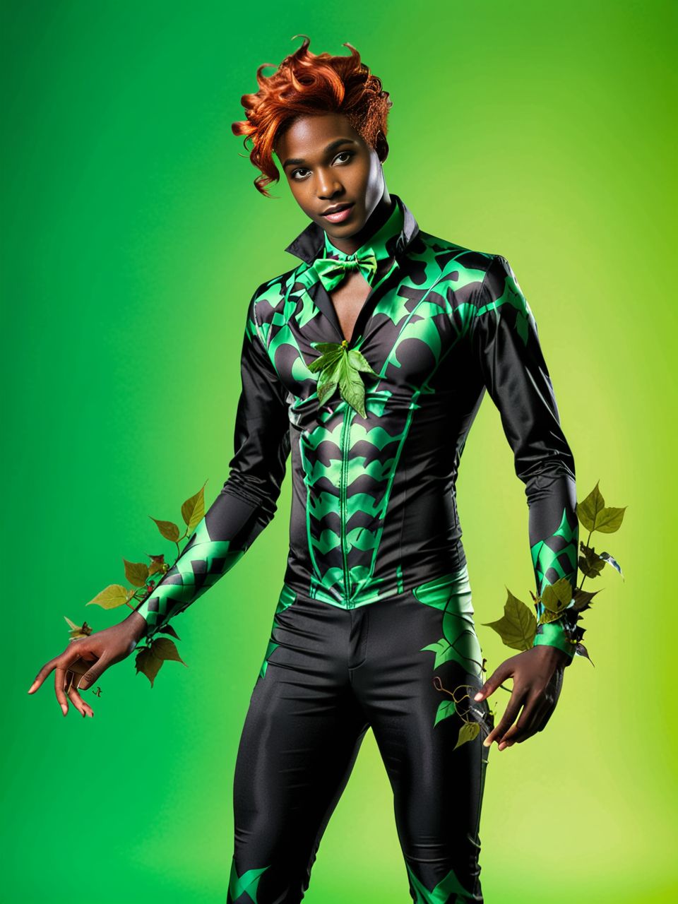 Vibrant Poison Ivy Cosplay: Young Black Man in Green