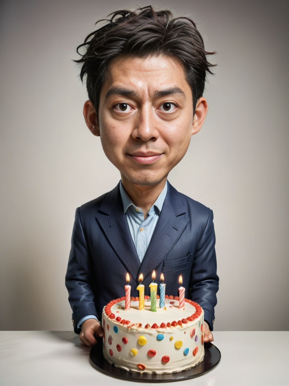 Whimsical Japanese Man with Birthday Cake