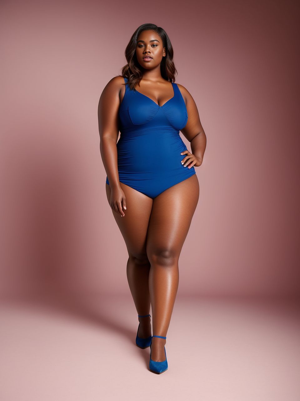 Young Black Woman Plus Size Fashion Model in Blue Apparel