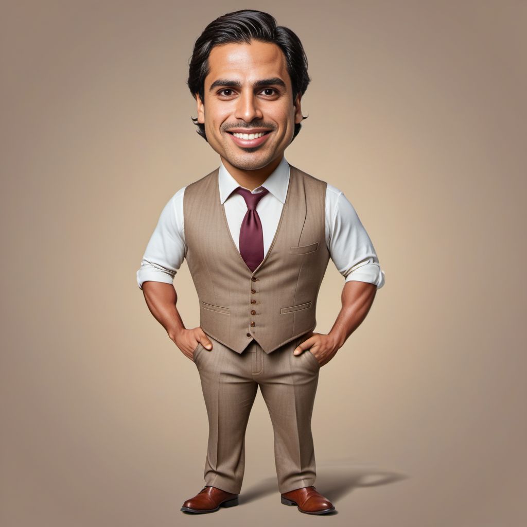 This image features a young and handsome Hispanic man caricature. He is depicted as a tailor, holding a giant spool of thread. The caricature is shown in full body. The image is perfect for projects related to fashion, sewing, and craftsmanship.